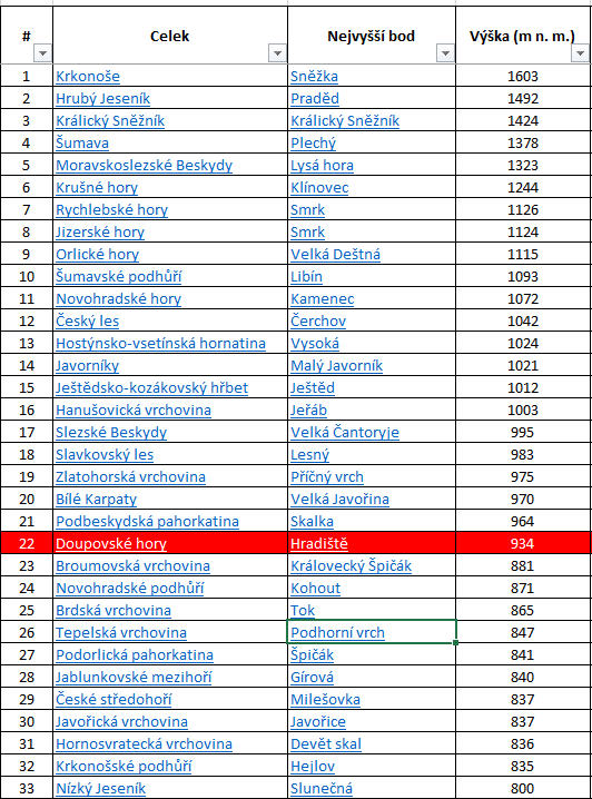 Jaké kopce a hory jsou v plánu?